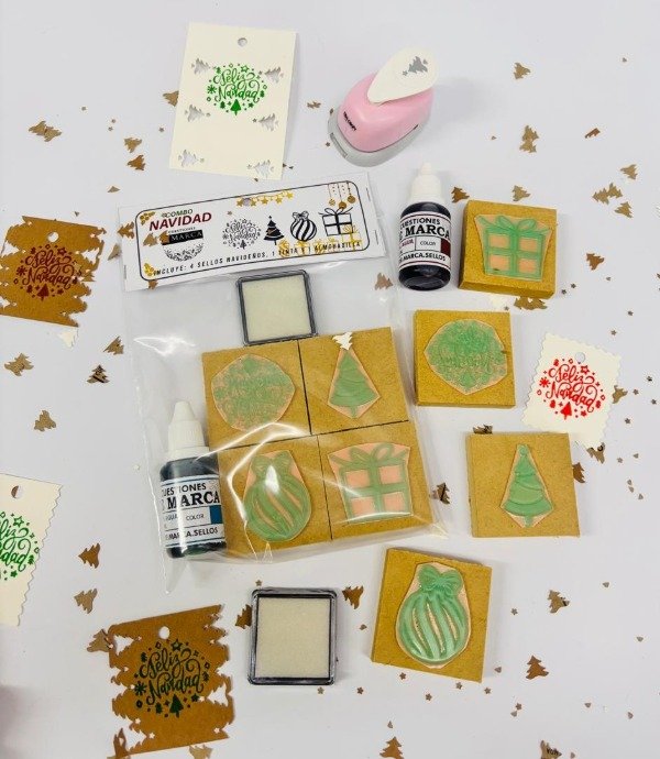 Incluye: 4 sellitos de 4cm + 1 tinta de 20ml + 1 almohadillita de 4cm