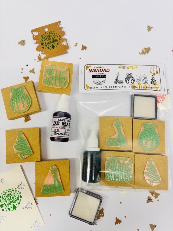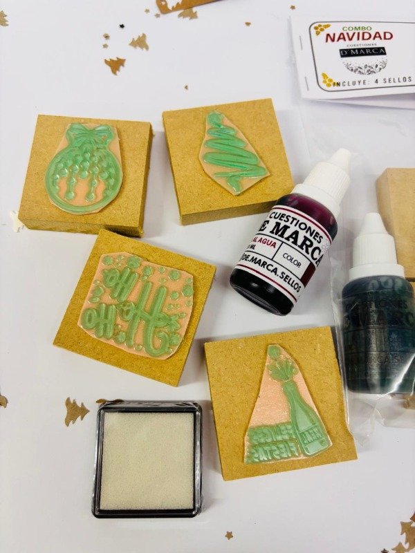 Incluye: 4 sellitos de 4cm + 1 tinta de 20ml + 1 almohadillita de 4cm