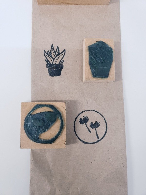 1 sello de 4x4cm, 1 sello de 3x4cm